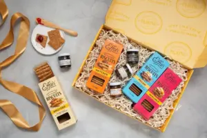 On the other coast, Taylor Golub, a former corporate marketer turned food creator, manages the digital side. He built an Instagram-focused business blending health and indulgence and works with brands like Effie’s to create seasonal recipes. Golub plans eight to nine recipes a year, matching Effie’s flavors to occasions—walnut for pumpkin dip in fall, mini oatcakes for back-to-school boards. Since Effie’s products are premium and sold mostly in specialty stores, he pairs them with accessible but elevated ingredients, helping busy hosts create impressive spreads.